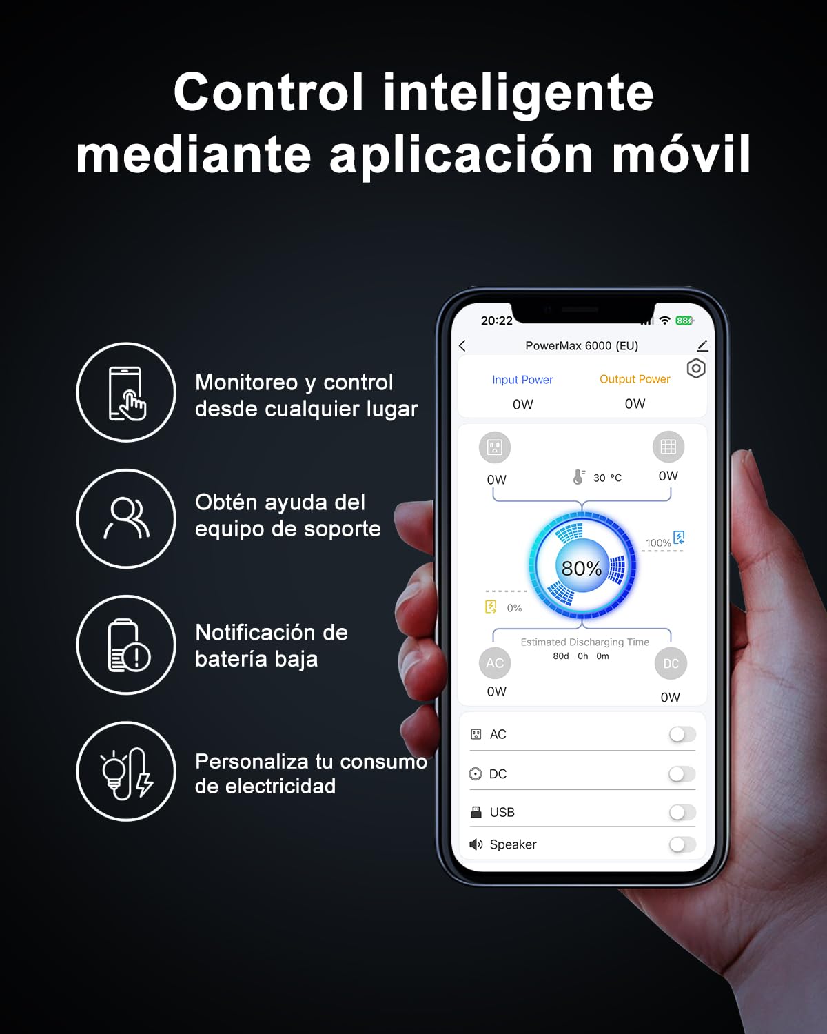 Carga combinada AC + solar: hasta 4600 W (carga completa en solo 1 hora)